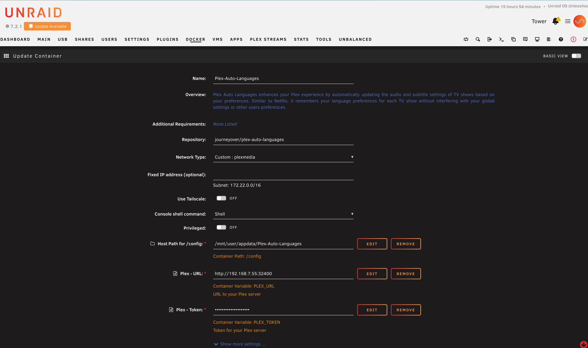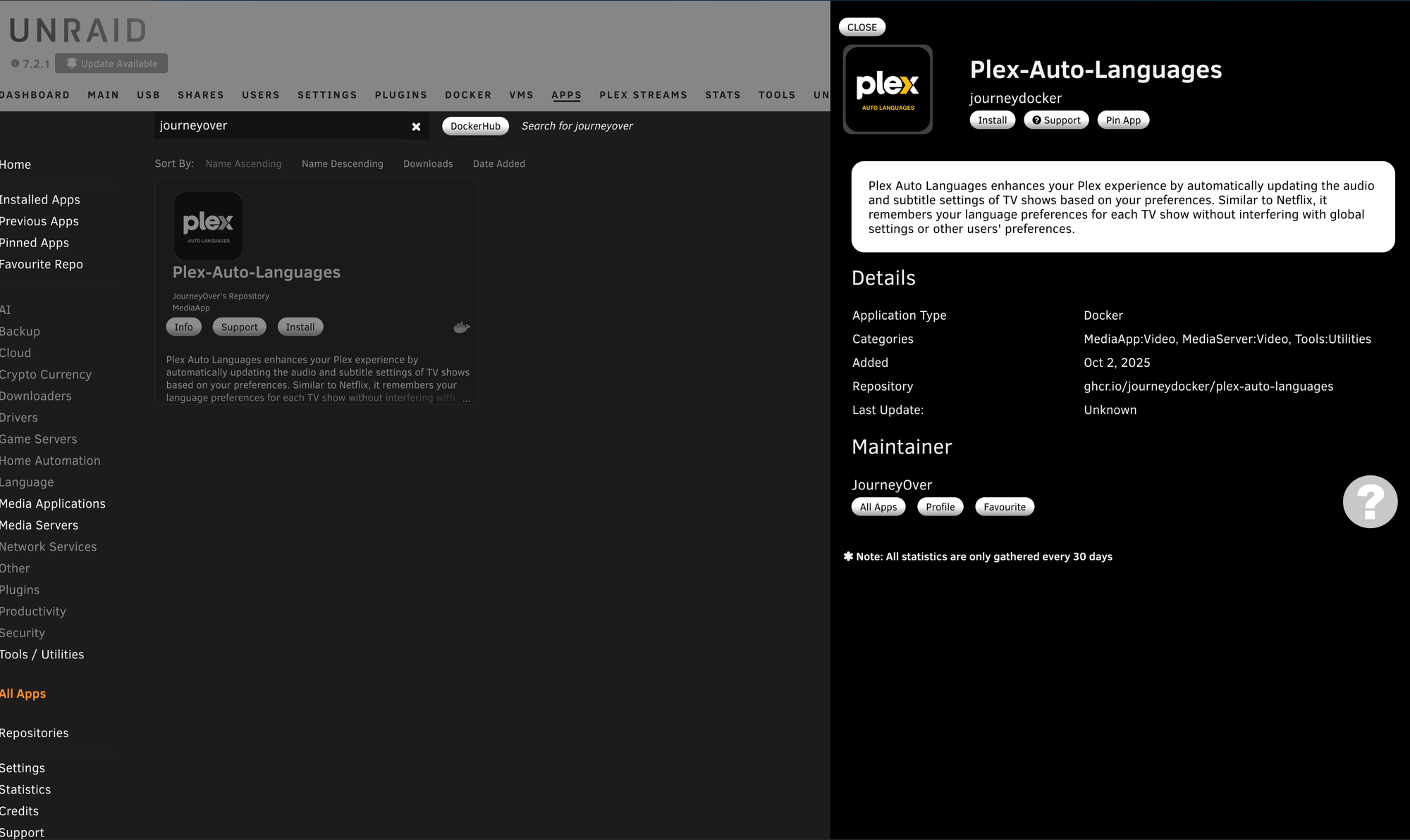 Wie viele kleine Helferlein im Self-Hosting-Universum ist auch Plex Auto Languages als Docker-Container verfügbar – perfekt für Unraid-Nutzer.