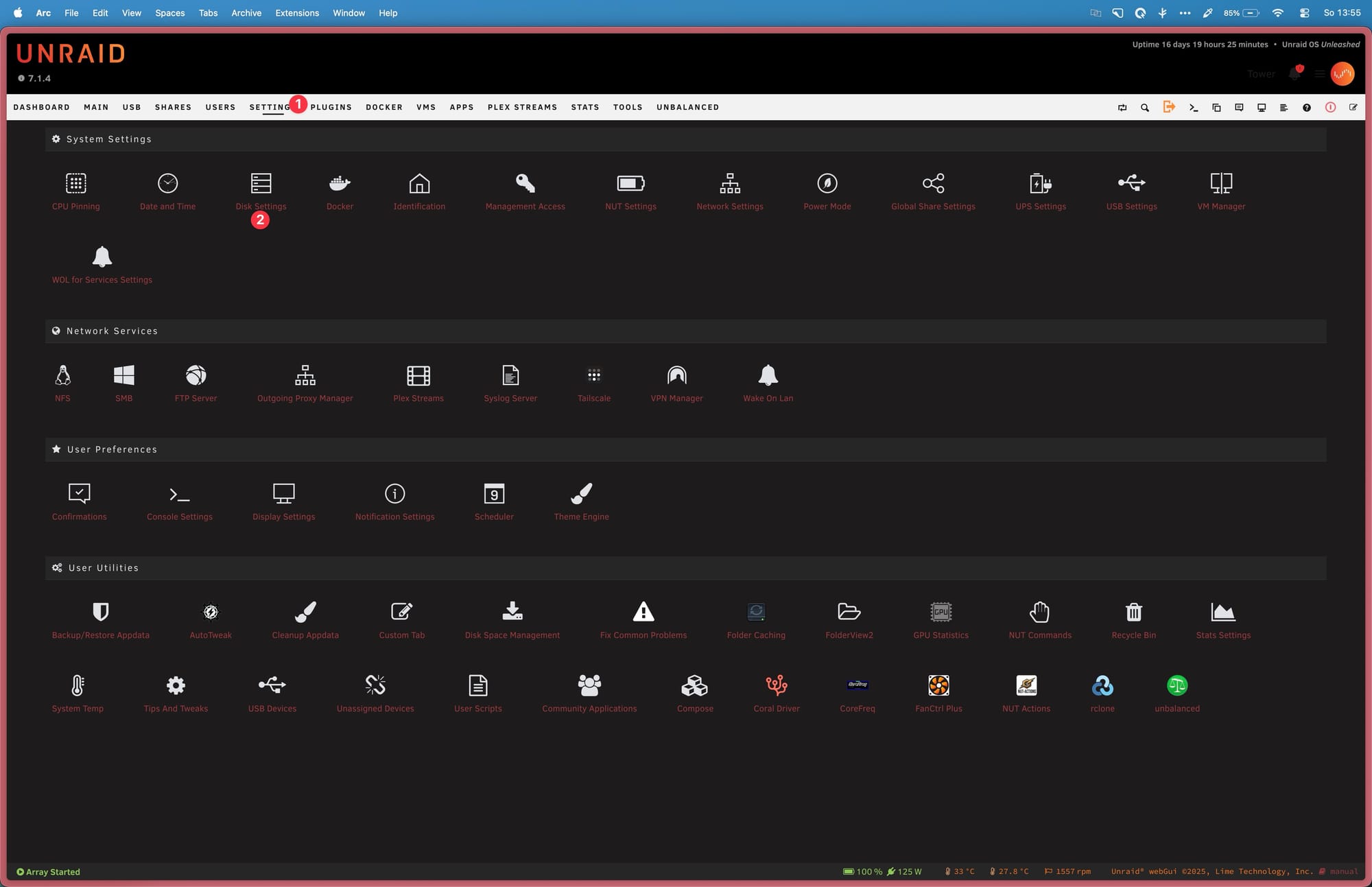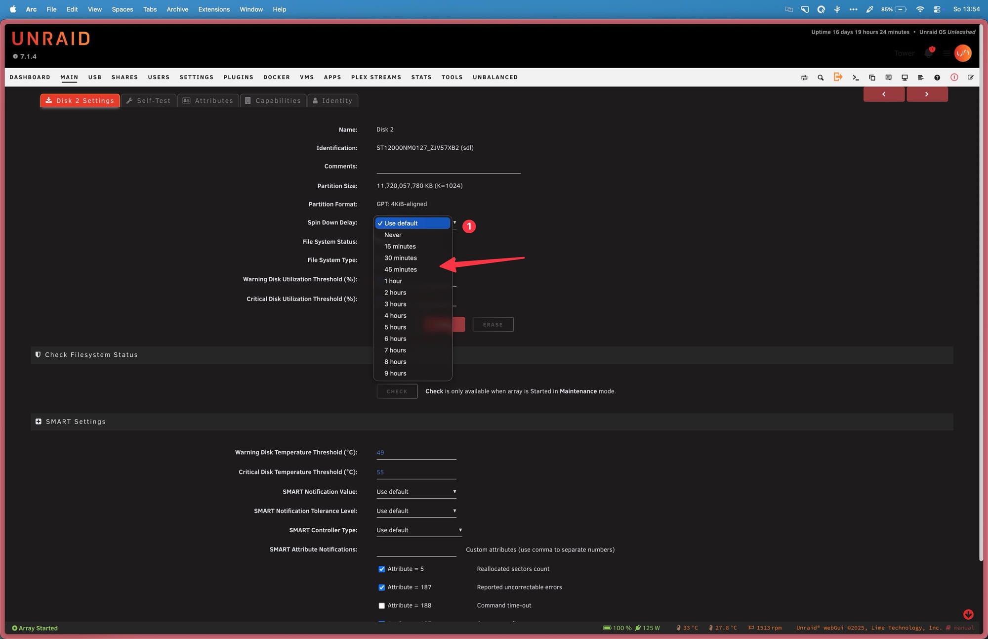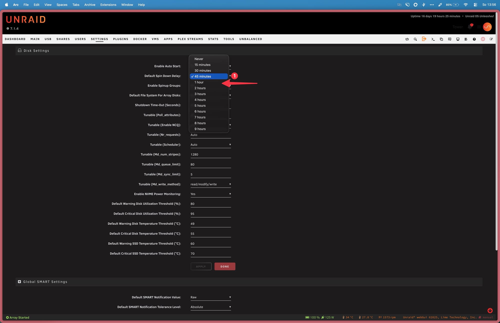 Unraid macht es dir leicht – der Spindown ist direkt im System integriert.